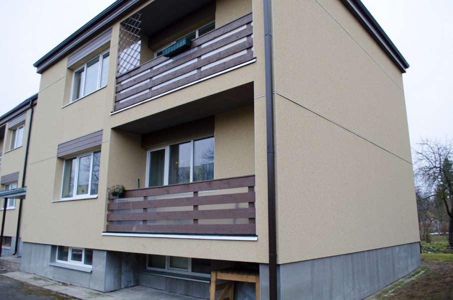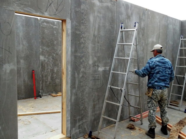 Remplir les joints avec une résine élastique ou un joint. À l’extérieur, ils sont recouverts de lattes d’usine ou de variantes fabriquées à partir de déchets DSP. L'espace entre le mur et les feuilles, en fonction de l'objectif de la structure, peut être laissé vide ou rempli d'isolant, qui est un élément de construction très important pour les immeubles d’appartements.