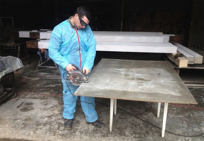 - Coupe. Lors du découpage des plaques sur les chantiers, appliquez des scies à main et bulgares. Pour obtenir un bord lisse, il est nécessaire que le disque de coupe fasse saillie au-delà du plan inférieur de la feuille pendant la période minimale possible. La découpe de la feuille s'effectue à partir du bord arrière afin de préserver le recto de la feuille des dommages mécaniques.