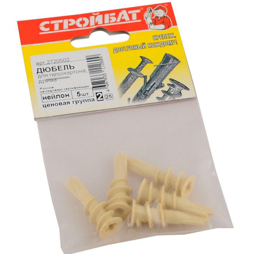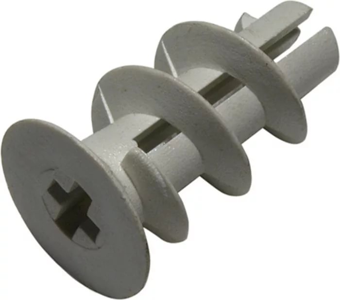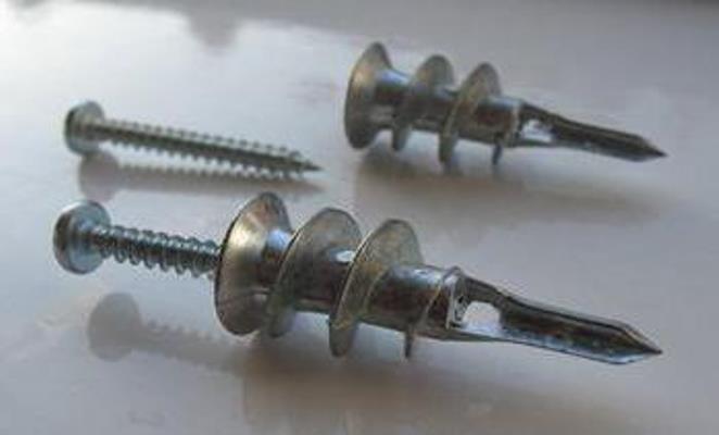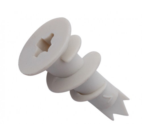 Les modèles modernes de clous à goujon pour plaques de plâtre constituent un type de fixation très courant. La rallonge est en nylon pur. La conception du produit comprend trois sections distinctes. Le trou traversant est situé dans la "queue" de l'attache.Cela facilite le vissage et crée la course axiale souhaitée pour les vis.