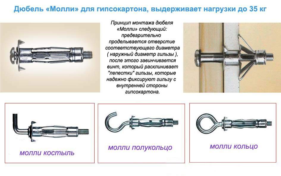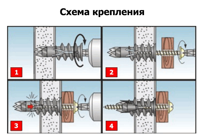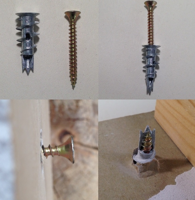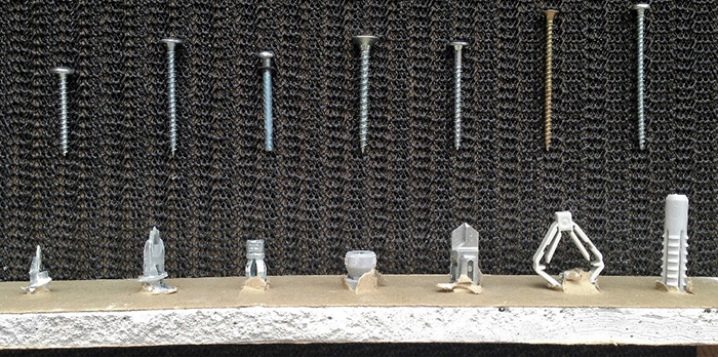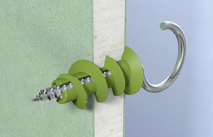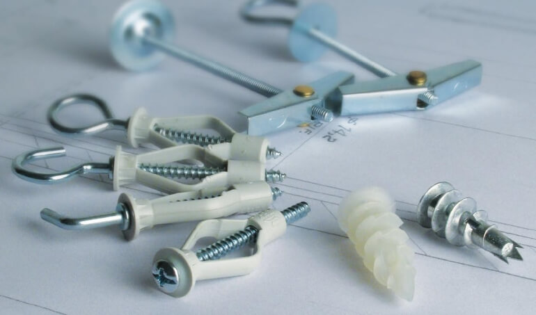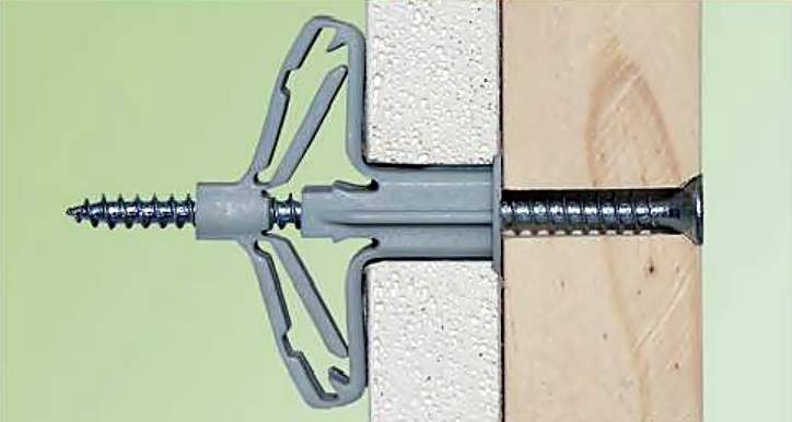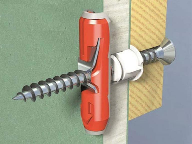 Un autre type de fixation est un goujon avec une perceuse. Ces détails peuvent être fixés même sur des murs multicouches en plaques de plâtre.. Les fixations à vis ont besoin directement dans le matériau lui-même.