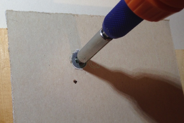 - Le trou lui-même est préférable de faire un peu plus de diamètre que l'attache. Cela aidera également à éviter de fissurer le panneau de gypse lors de l'installation.