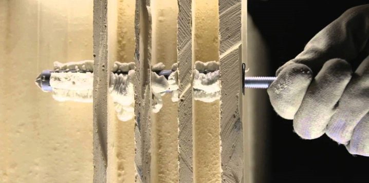Les ancres chimiques utilisées pour les plaques de plâtre sont en fait des cartouches ou des capsules avec une masse adhésive spéciale. En plus d'une telle ancre, des manchons maillés sont vendus, créant ainsi une monture très solide..