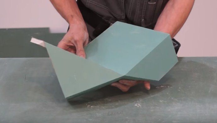 Quand une personne veut former une boîte ou une partition, elle utilise plusieurs éléments. Ils sont montés sur une base en métal pour obtenir un angle droit. Si vous utilisez un cutter en forme de V, il n’est pas nécessaire de couper la feuille. Vous devez juste faire la coupe appropriée et coller ses bords avec de la mousse de polyuréthane, courbant la feuille avec audace.
