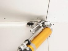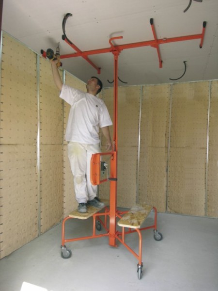 L’ascenseur facilitera grandement la tâche si le montage d’une feuille de placoplâtre n’est fait qu’au plafond.La feuille est fixée sur les fixations, monte à la hauteur souhaitée et est fixée à l'aide de vis. Le soulèvement des feuilles de cette manière élimine le risque d'endommager ce matériau fragile.