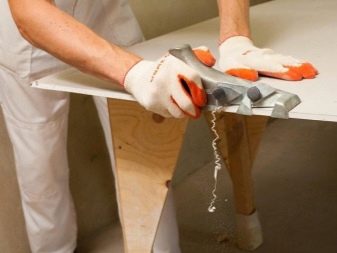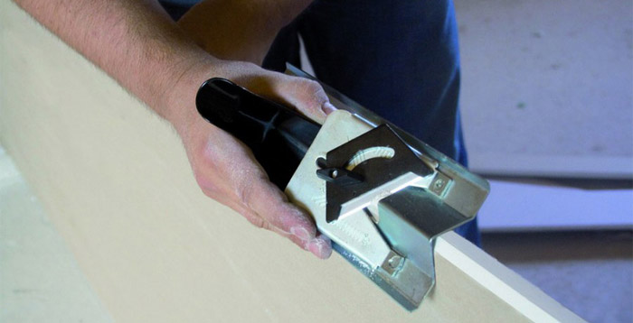 Pour couper les bords de la dalle à un certain angle, ainsi un avion est utilisé pour dénuder le bord de la feuille. Pendant le travail avec GKL, utilisez des dispositifs de pelage et de bordure.