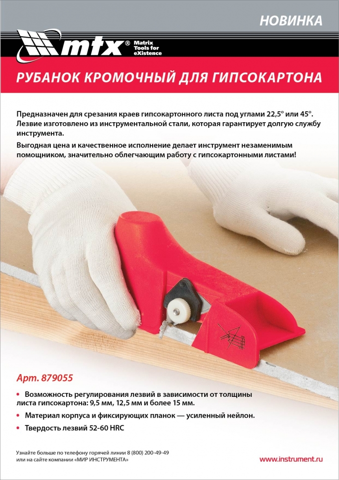 Avec le premier type, le bord est nivelé. D'une autre manière, le plan de broyage s'appelle râpe. La structure de cet outil comporte une poignée, un cadre et une base - râpe. Lorsque vous travaillez, une feuille de gypse est maintenue et un avion est tenu le long du bord, le rendant ainsi lisse et beau.