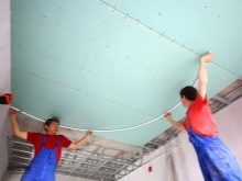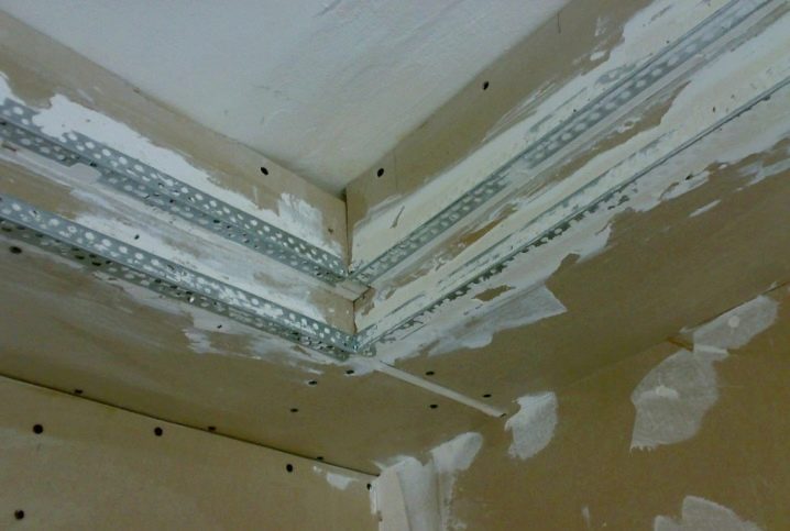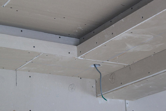 La boîte de plafond doit avoir une surface parfaitement plane, afin que les professionnels puissent obtenir le résultat souhaité dans le traitement des joints utilisent un petit truc. Le long de toutes les coutures, une couche de feuille de carton est enlevée, égale à la largeur de la bande, le traitement est effectué avec un apprêt, et seulement après que la bande est attachée.