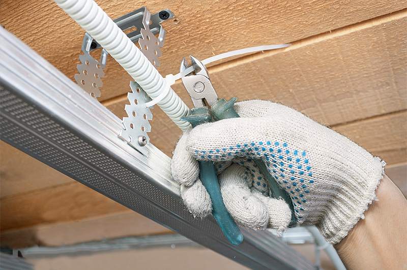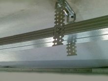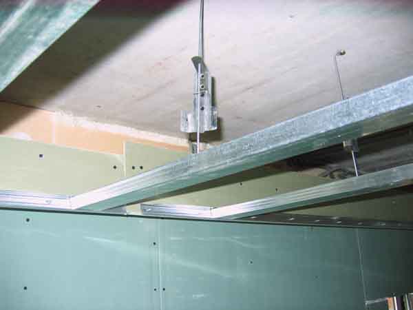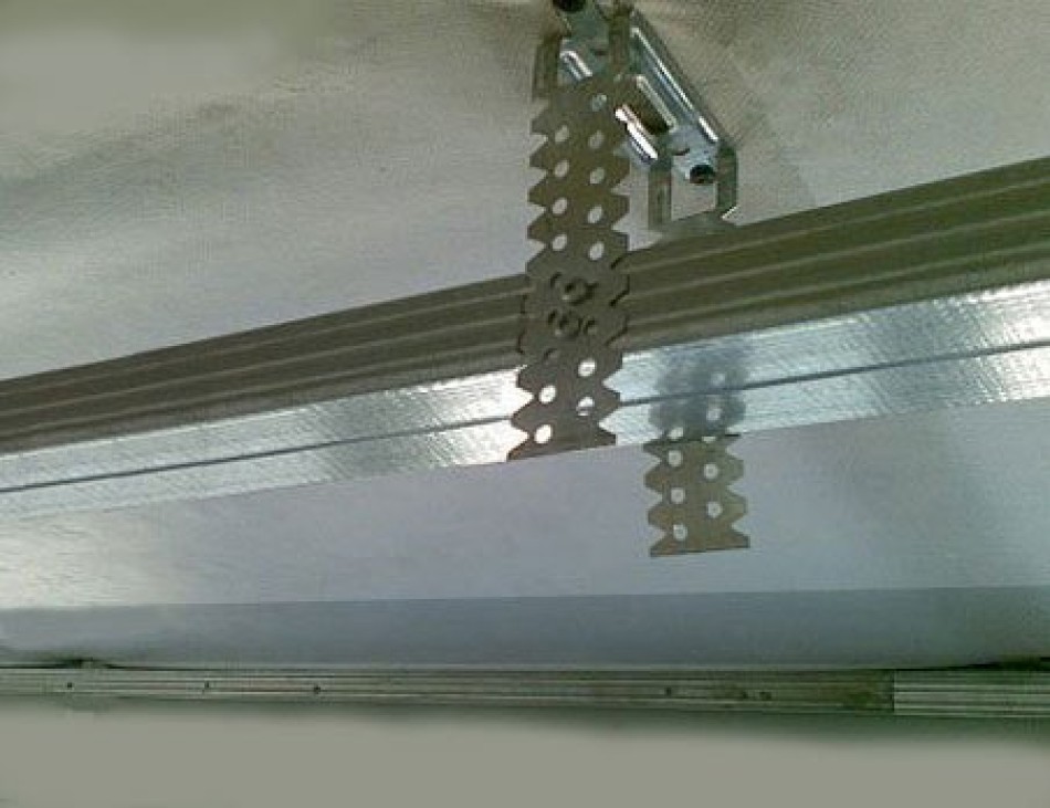 - Utilisé comme attaches suspensions de bandes ou de fils. Les suspensions de type ceinture perforées aident à fixer le boîtier sur la surface rugueuse du plafond. Des cintres métalliques sont utilisés s'il est nécessaire de disposer un agencement inférieur de la structure. Le plus souvent, des éléments de suspension filaires sont utilisés dans les pièces à hauts plafonds (à partir de 3,5 m).