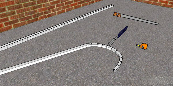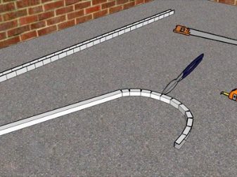 - Pour calculer la taille de la boîte et la placer correctement au périmètre au bon endroit, vous devez dessiner un plan et le déplacer du papier au site de conception. Le balisage du futur design produit par le niveau de l'eau (laser), cordon de peinture, ruban à mesurer, crayon et angle de construction.