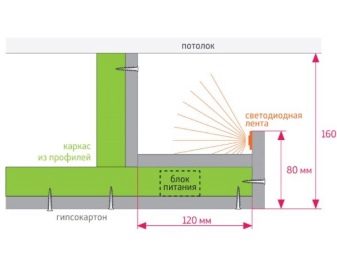 Une fois le dessin établi, en tenant compte de toutes les nuances et de tous les détails, vous pouvez marquer l'emplacement de la structure. Pour déterminer la profondeur de la boîte, il est nécessaire de prendre en compte les dimensions des communications cachées ou, si l'installation des luminaires est prévue, leur longueur. De plus, l'épaisseur des feuilles est prise en compte lors du marquage. La distance entre la surface rugueuse du plafond et les feuilles lors de l’installation des appareils doit être légèrement supérieure à la longueur de l’appareil. En règle générale, 1 à 2 cm sont ajoutés à la longueur du luminaire pour un fonctionnement en toute sécurité.