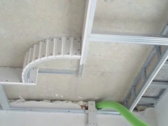 Il est préférable de retirer les câbles électriques suspendus dans un appareil spécial - un tuyau ondulé - et de fixer la structure au plafond. Après cela, vous pouvez commencer à apprêter la surface du tuyau à masquer. Cette procédure contribuera à empêcher la corrosion de la surface métallique. C'est une sorte de protection de la surface des plaques de plâtre contre la formation de taches de rouille. Après avoir attendu le séchage complet de l'apprêt sur la surface, vous pouvez commencer à marquer le design futur de la boîte.