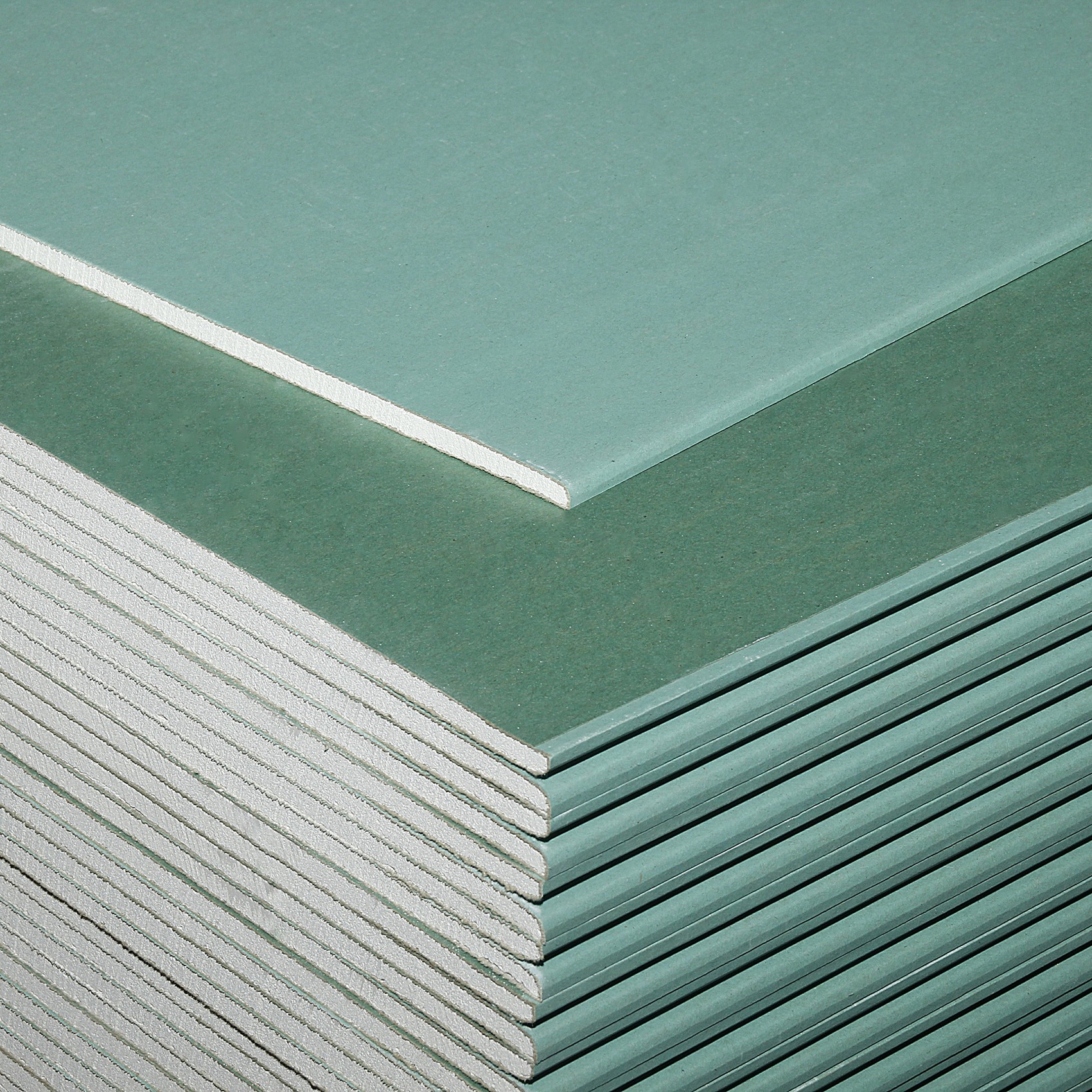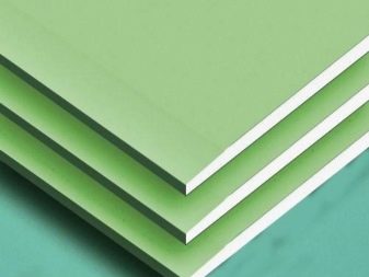 - Résistant à l'humidité Les feuilles GKLV, produites par les fabricants de couleur verte, sont utilisées pour la décoration de pièces très humides: salles de bains, salles de bains, garages. Le matériau résiste à l'humidité en raison de l'imprégnation de ses couches avec une composition spéciale, dans laquelle des composants empêchant le développement du champignon sont également ajoutés.