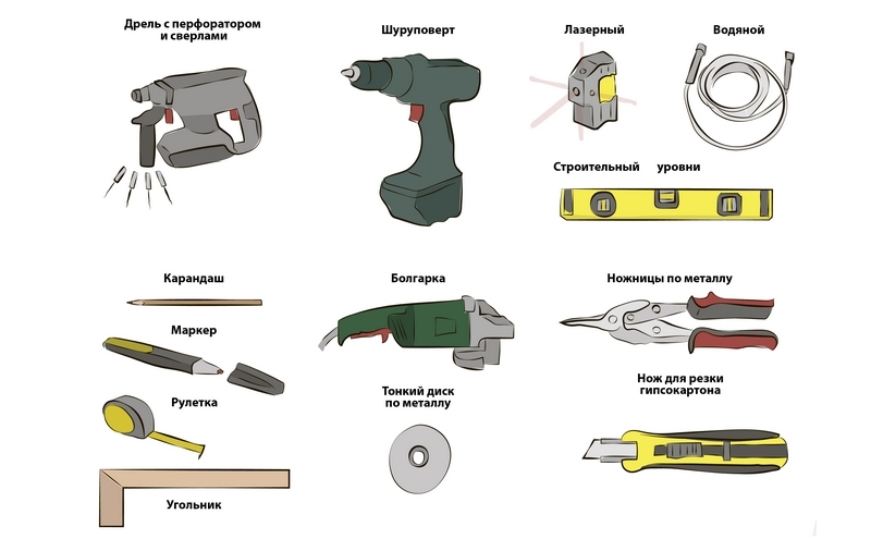 En plus des outils utilisés lors du processus d'installation de la boîte et des feuilles elles-mêmes, du matériel supplémentaire sera également nécessaire., sans lequel l'installation de cette installation est impossible.