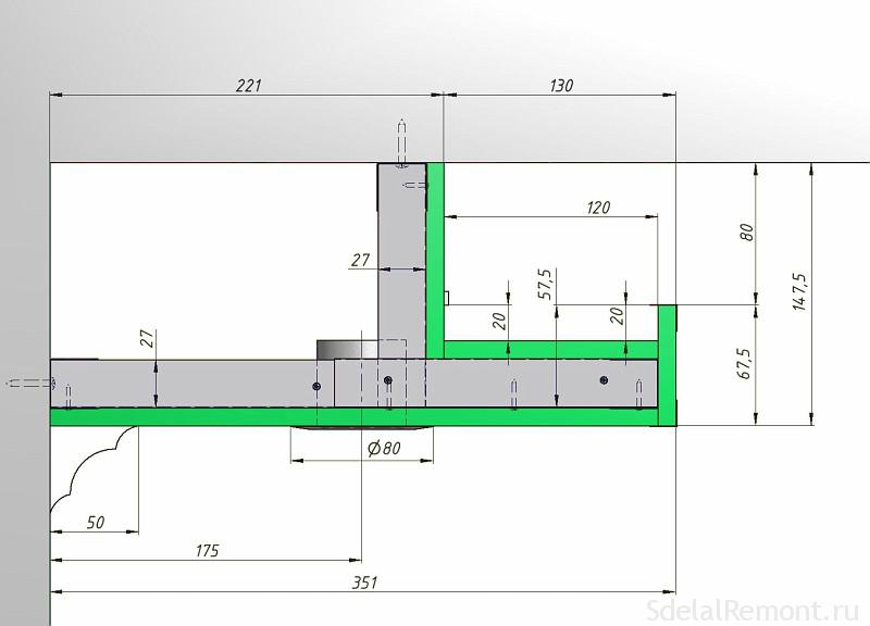 Afin de bien assembler la structure, il est nécessaire de commencer à faire du balisage. Tout marquage commence par un dessin qui prend en compte les dimensions de la pièce, l'emplacement de la boîte et les préférences intérieures. En cas de doute, en raison de la taille de la structure, il est préférable de dessiner le motif de la boîte sur du papier grand format dans le respect des proportions.