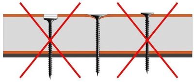 Lors du vissage des vis doit être prudent. Vous n'avez pas besoin de noyer la tête des vis trop profondément ou, au contraire, de les laisser dépasser de la surface.