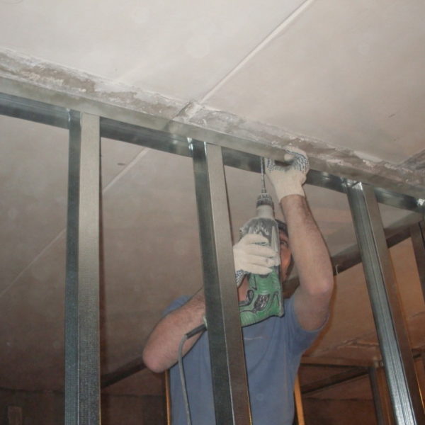 Le cadre en métal avec profils Knauf est monté en plusieurs étapes simples.Tout d'abord, le coin de la pièce est sélectionné, qui est situé plus bas que tous les autres. Il est déterminé à l'aide du ruban à mesurer.