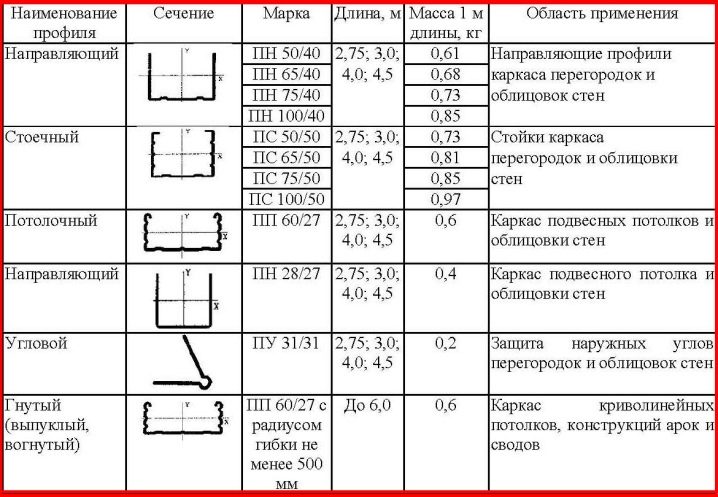 Pour créer une latte de fer sur les murs et les plafonds, une paire de structures (CD, UD) est utilisée. Ils ont une taille standard. Les différences apparaissent dans le métal et les images. Peut également être utilisé profilé rack rack.