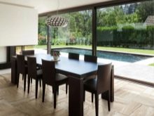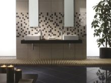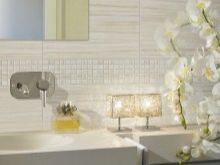 - Brillant la tuile attire l'attention avec la facture et le brillant. Elle donne à l'intérieur un chic et une solennité particulière. Cette option est idéale pour les petites pièces, car elle les rend visuellement plus spacieuses.