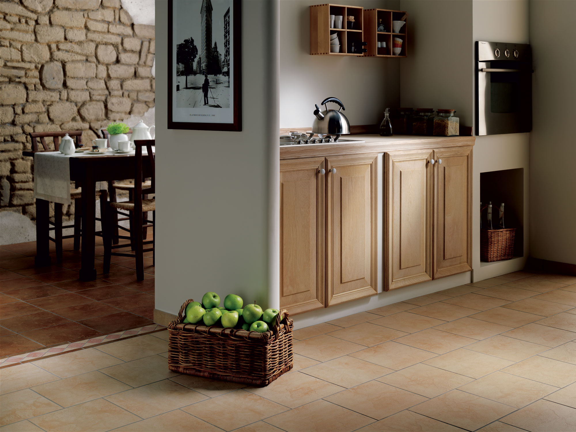 - Collection Scroro hard rock Convient aux intérieurs traditionnels. Les amateurs de style rétro devraient regarder les carreaux de la collection Monterrey Arancio ou Montalcino Cotto.