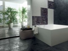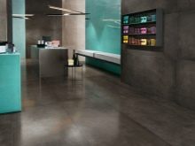 Si l'installation des carreaux doit être effectuée dans des pièces avec des sols en béton, où l'humidité est constamment observée, l'imperméabilisation est pré-posée et les joints sont scellés avec du mastic. Le carrelage en grès cérame a également l’air parfait sur un escalier en béton. Il peut être immédiatement installé sur la surface du béton à l’aide d’une colle de nivellement. Comme le carrelage en porcelaine n’est pas caractérisé par une isolation thermique élevée, il est recommandé d’installer un système supplémentaire avec chauffage pour le finissage des sols dans les toilettes ou la salle de bain.