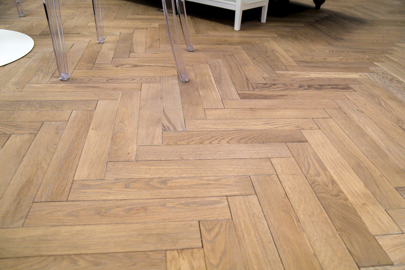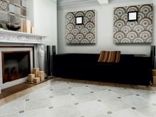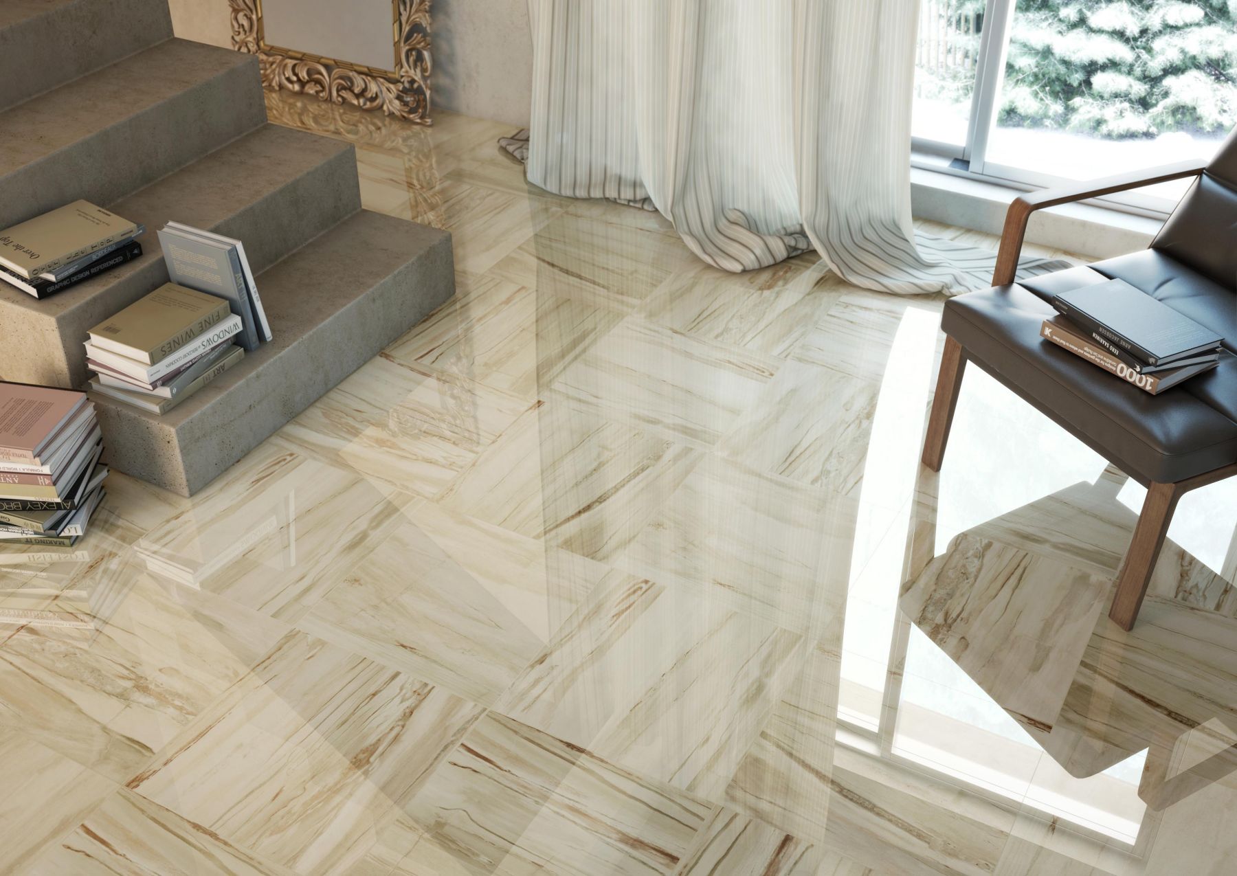 - À chevrons. La tuile de porcelaine est posée sous forme de plancher.