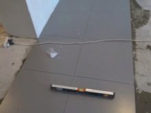 Sur le revêtement primaire, posez un pare-vapeur et un pare-vapeur, fixez la base et posez les carreaux. Vous pouvez utiliser comme base des feuilles de panneaux de gypse ou de ciment résistant à l'humidité. Les feuilles sont fixées avec des vis et contrôlent les joints situés au-dessus des panneaux.