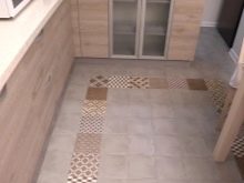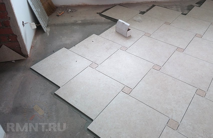 - Avec offset. Extérieurement, la méthode présente des similitudes avec la maçonnerie et elle est utilisée pour finir les sols dans le couloir et dans la cuisine. Beau modèle peut être disposé à la fois des carreaux rectangulaires et carrés.