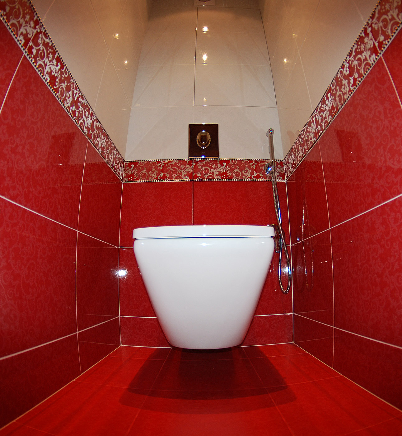 Pour que la décoration de la salle de bains soit harmonieuse avec les autres éléments de la décoration, vous devez choisir sable, turquoise, bleu ou rouge.La pièce dans laquelle les carreaux blancs et rouges seront utilisés sera élégante. Il est également considéré comme une nuance noire à la mode, complétée par des couleurs or, vert ou orange.