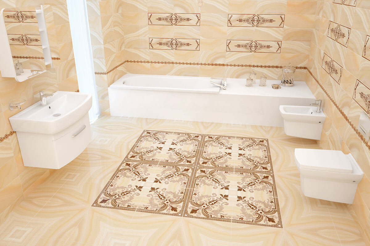 La tuile de porcelaine a la haute performance, ainsi elle peut être employée pour la décoration de n'importe quels lieux. Ces carreaux sont particulièrement beaux à l’intérieur de la salle de bain et des toilettes. En règle générale, des carreaux carrés et rectangulaires sont choisis pour la conception de ces salles, ces dernières étant adaptées à la décoration des murs.