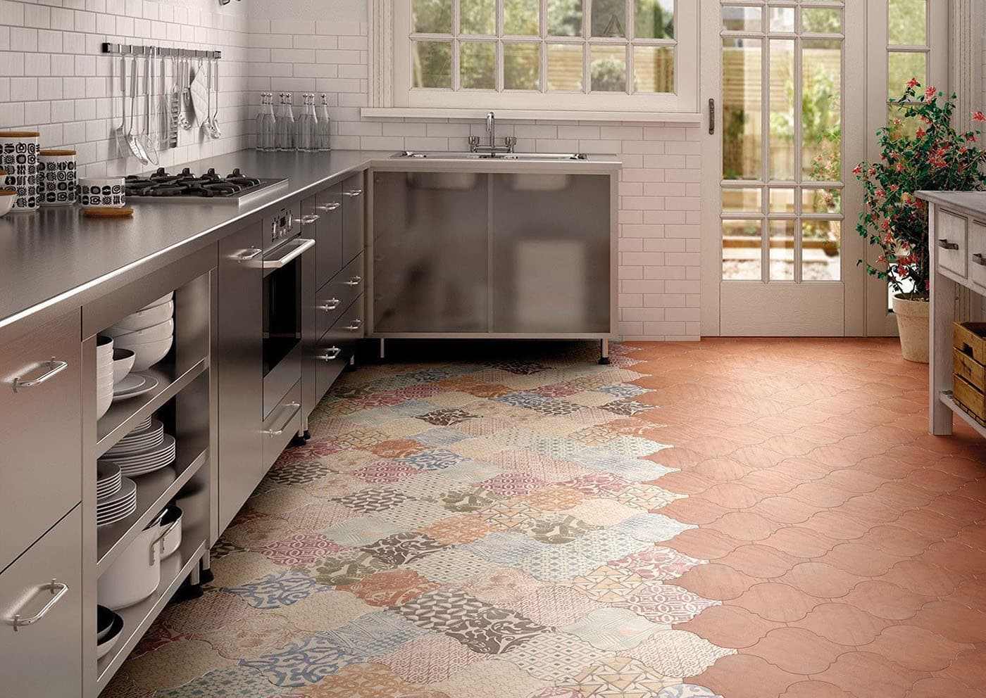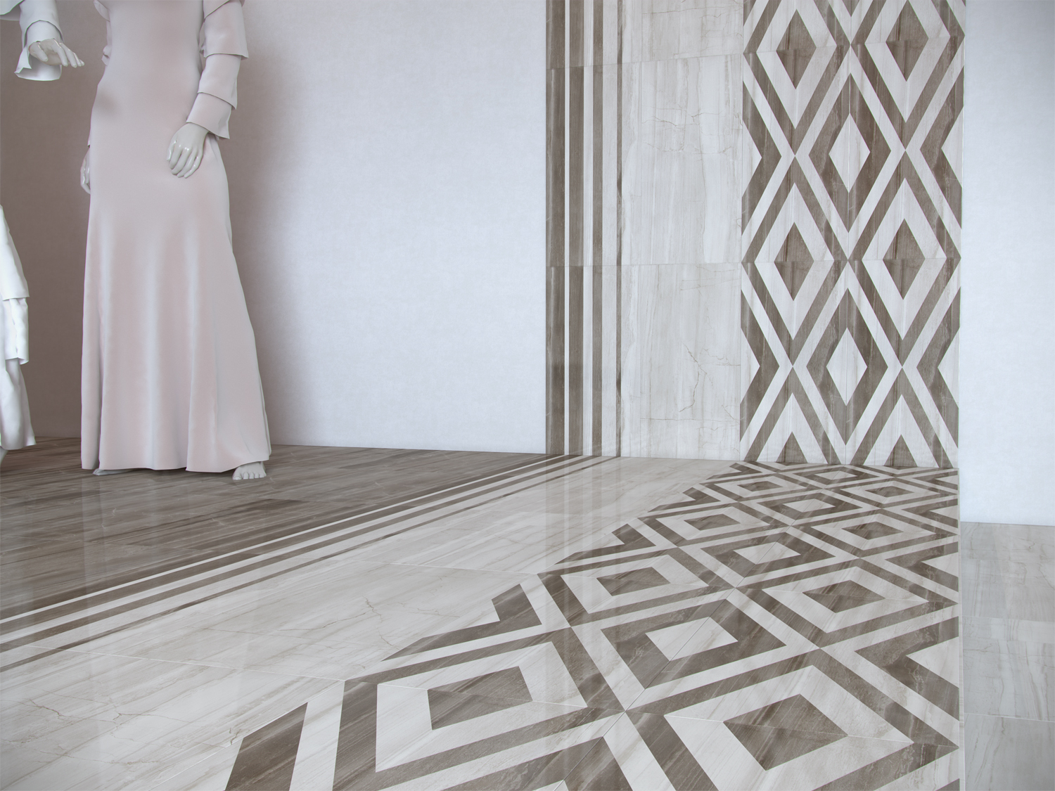 Au cas où il serait nécessaire de disposer un dessin en grès cérame, il est recommandé de choisir des carreaux de dimensions 30 × 60 cm Ce format a été spécialement développé par les designers. Des dalles au format 20 × 20 cm sont également en vente, elles sont dites «industrielles», car elles sont utilisées pour la finition des locaux industriels. Il résiste aux attaques chimiques et peut résister à toutes les températures.