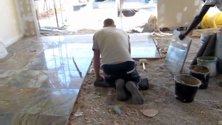 En outre, un besoin supplémentaire de coulis pour les joints, solution d'apprêt, croix en plastique. Si la surface de travail présente des défauts, ceux-ci doivent être corrigés. Pour cela, vous devez préparer un mortier de ciment et réaliser une chape. L'installation du grès cérame sur le sol est réalisée après la pose des isolants hydrauliques et thermiques. Un substrat spécial, un profilé métallique et des colliers de serrage seront également nécessaires.