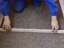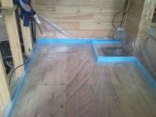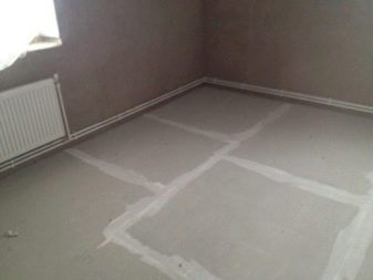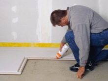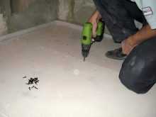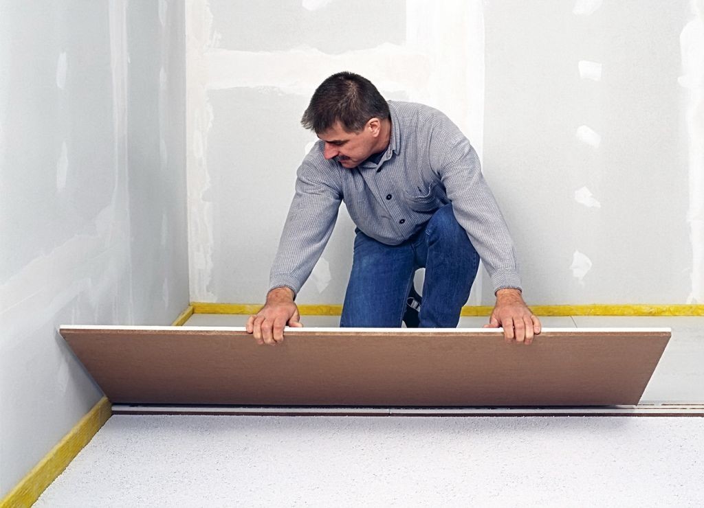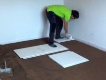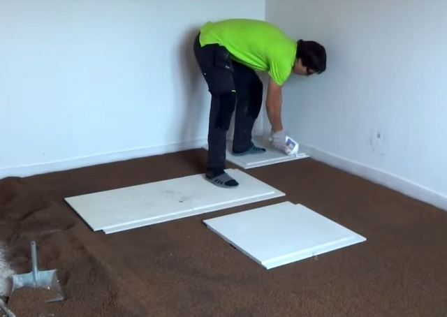 - Il est nécessaire de préparer la base. Si les feuilles doivent être placées sur une base en bois, vous devez vérifier les différents éléments de la structure afin d'éliminer davantage le grincement. Pour le béton, il suffit de dépoussiérer et de ramasser les ordures.