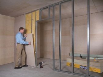 - Avec elle, la construction de cloisons intérieures.Étant donné que le produit est capable de supporter une charge importante, une porte peut être faite dans le faux mur.