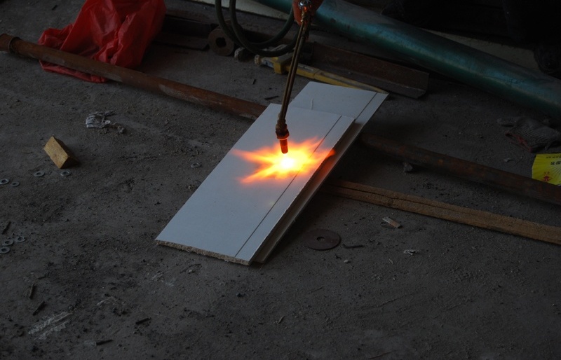 - De plus, le matériau est applicable dans les chaufferies, les salles de conférence, les cages d'ascenseurs. En cas de flamme, la feuille ne se brise pas, elle résiste au feu.