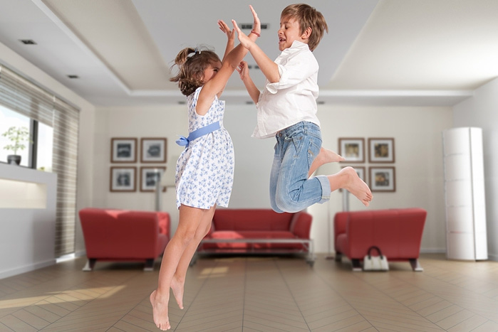 - Le matériau de construction ne craque pas, il peut être utilisé avec le système «sol chaud». Il convient à la pose sur un socle en bois.