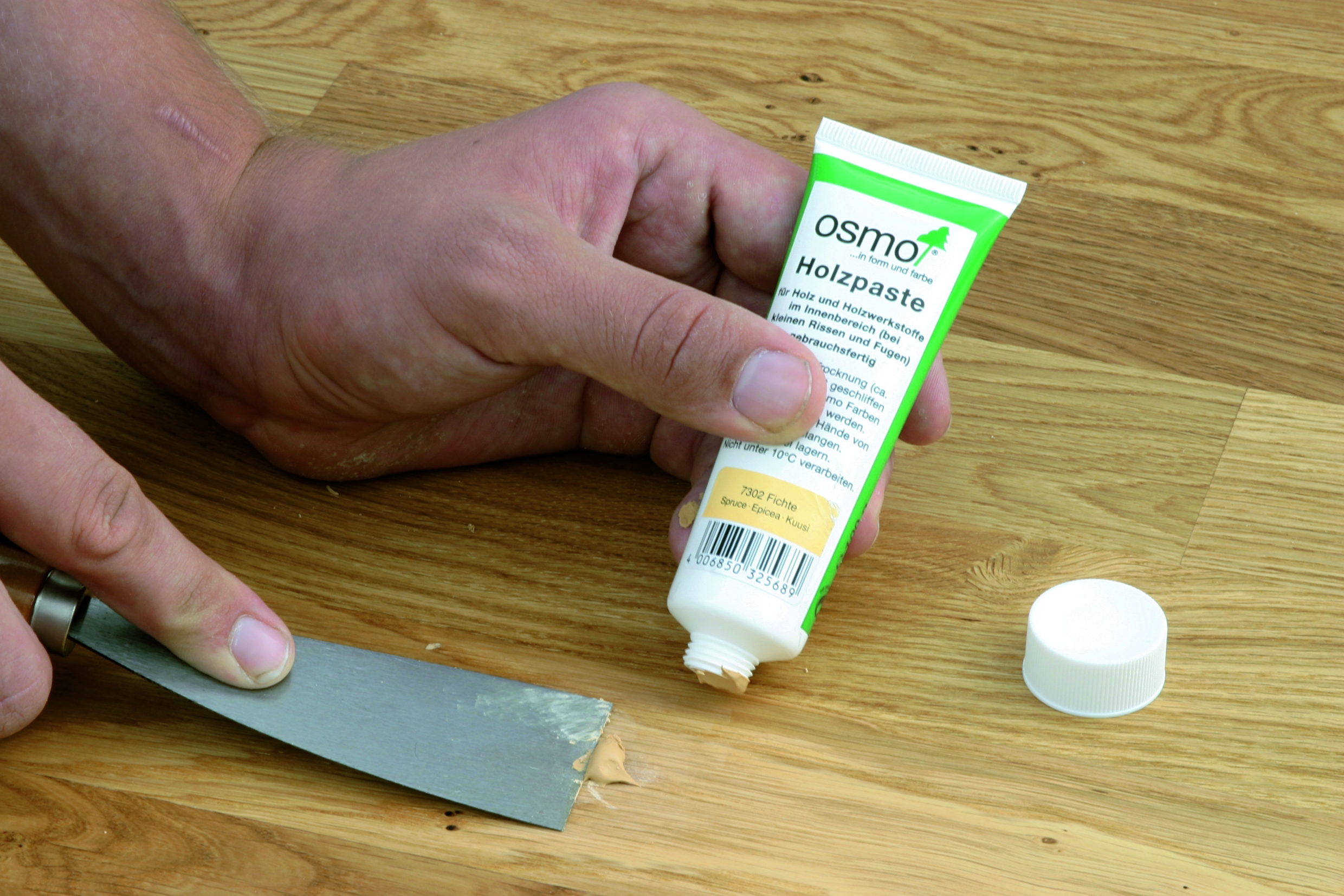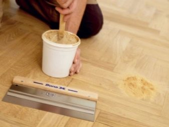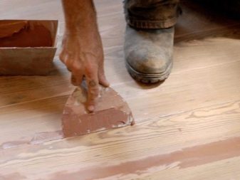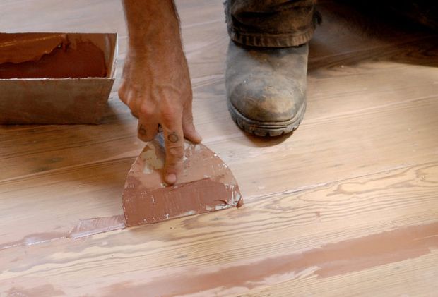 Nécessaire et matériel pour le mastic. Ils éliminent les fissures et les coupures sur le sol. Sa couleur doit correspondre à la couleur du sol. Vous devez être vigilant lorsque vous choisissez un matériau. Même la cohérence peut jouer un rôle important. Après un certain temps d'application, cela peut grandement changer la couleur.