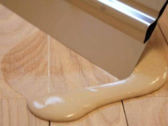 La colle à parquet est utilisée pour éliminer les fissures. Il est versé avec une seringue spéciale. Il est nécessaire de donner une charge sur le parquet et laisser du temps pour le séchage. En règle générale, cela se fait avec un sujet de poids.