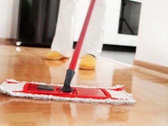Après toutes les activités effectuées avec un aspirateur, vous devez nettoyer le sol. Appliquez la première couche de peinture. Pour un bon revêtement, le vernis est appliqué en trois couches. Lorsque la dernière couche est sèche, les sols sont lavés avec du savon ordinaire pour éliminer le caractère collant. Laver à l'eau tiède.