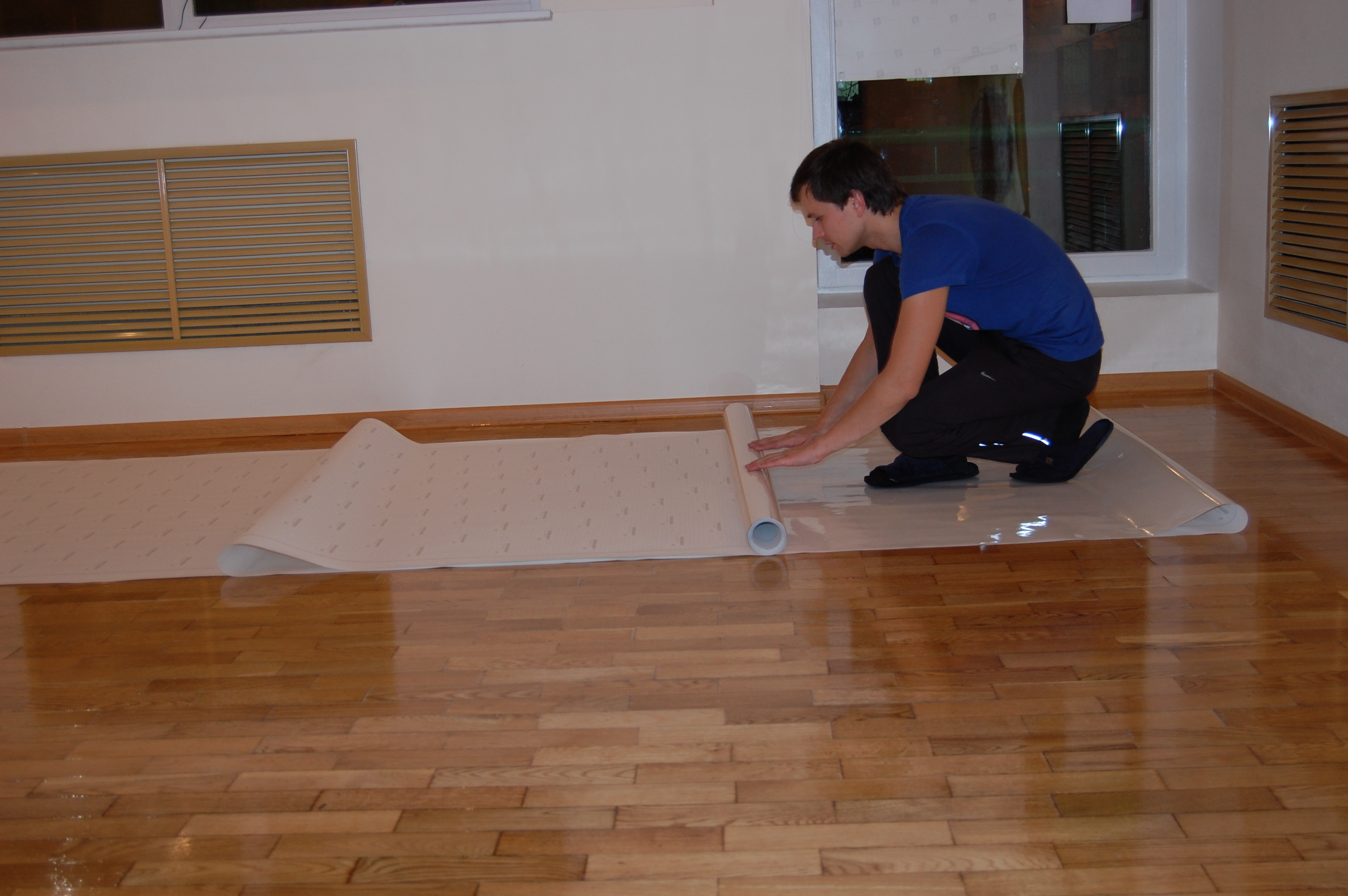 Après application du revêtement final la salle devrait être fermée au public. Il doit maintenir un certain niveau d'humidité.Il est nécessaire de rideau les fenêtres, car l'effet des ultraviolets sur le revêtement appliqué est exclu.