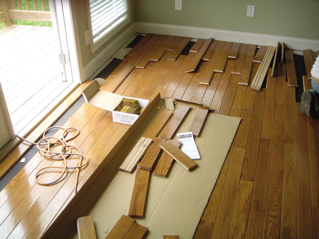 Avant de polir, assurez-vous de réparer le sol. La surface de l'appartement est complètement débarrassée des meubles, des objets et le sol est lavé à fond. L'état du parquet est entièrement vérifié. Chaque barre que vous devez exploiter. Le son sourd qui apparaît lors du tapotement indique que les vides apparaissent sur le sol.En règle générale, cela est dû au pelage de la bande de la base et à la formation d’un vide en dessous. Ce genre de lattes doivent être percés.