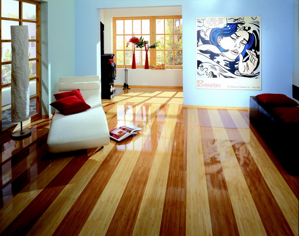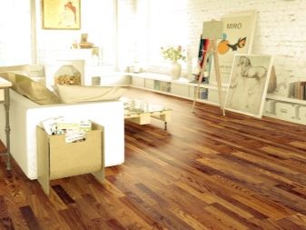 Si nous parlons des qualités positives du matériau, il convient de noter que grâce à lui, vous pouvez rapidement organiser la salle, car l'installation ne prend pas beaucoup de temps. Le plancher est naturel, et de nombreux consommateurs le préfèrent en raison de cet indicateur.Le produit résiste aux changements de température, il ne semble pas fissures et fissures, donc la durée de vie du revêtement sera longue. Pour cela, le matériau est recouvert de mélanges spéciaux et de vernis pour améliorer les performances.