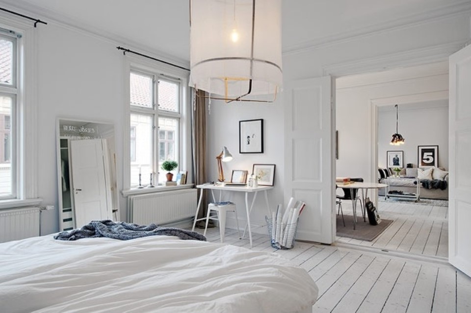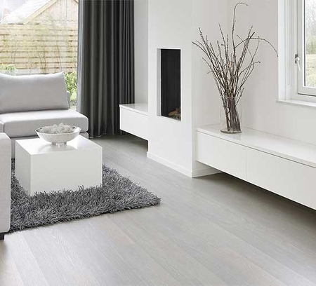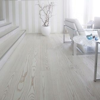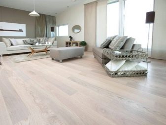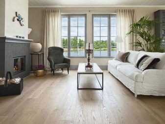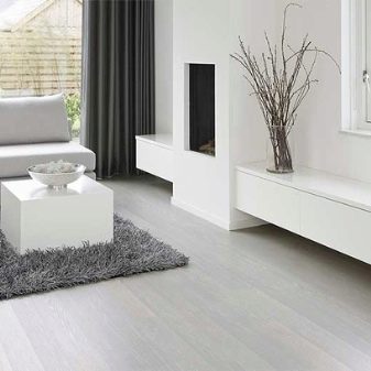 Le blanchiment ou le parquet dans des couleurs claires sont utilisés dans de tels domaines décoratifs: style classique, pays (rustique), Provence, Scandinave, minimalisme. Les couleurs aideront à compenser le manque d'éclairage. Les concepteurs recommandent d’utiliser des matériaux légers dans une plage «froide» s’il ya suffisamment de lumière naturelle et artificielle dans la pièce.