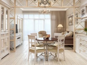 Les matériaux de finition dans une plage brillante sont choisis pour les appartements compacts et petits, dans lesquels il est nécessaire d'élargir visuellement les limites de la pièce. Les couleurs sont harmonieusement combinées avec des couleurs de luminosité, de température et de saturation différentes. Les teintes les plus courantes: beige, laiteux, champagne, crème.
