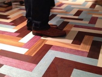 Le parquet aux couleurs vives est souvent utilisé comme accent. Avec l'ajout de couleurs saturées, l'intérieur devient plus expressif et attrayant. La couleur du sol peut être variée: bleu, rouge, vert, violet, jaune et leurs différentes nuances.
