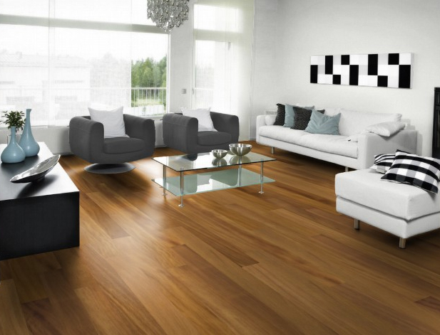 Un parquet aux couleurs «chaudes» créera une atmosphère chaleureuse dans la pièce. Ce segment comprend les revêtements à miroitements jaune, rouge, orange et rouge. Le matériau de finition de cette couleur est en teck, en olive ou en buis. Également dans le groupe des teintes "chaudes", vous pouvez faire un sol brun de noix, de lapacho et d’autres races.