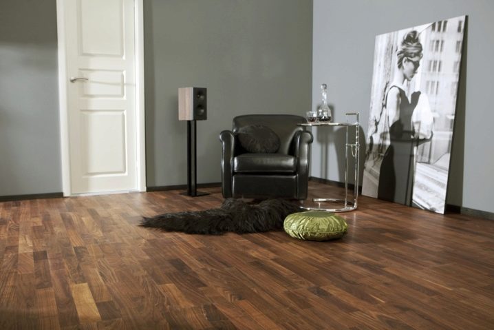 Couleur exquise, attirant l'attention de la sophistication et de l'élégance. Le parquet de couleur marron est très populaire sur le marché des matériaux de finition. Selon la teinte et la saturation, différenciez les couleurs claires et les couleurs sombres. De plus, la couleur brune peut avoir une température «chaude» ou «froide». La première option est choisie pour créer une atmosphère confortable et conviviale, et la seconde - afin d'ajouter un style de notes d'élégance et de fraîcheur.