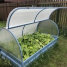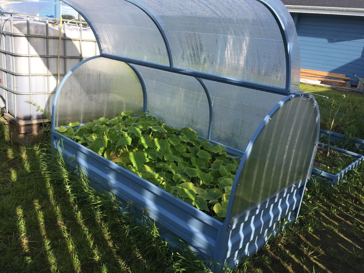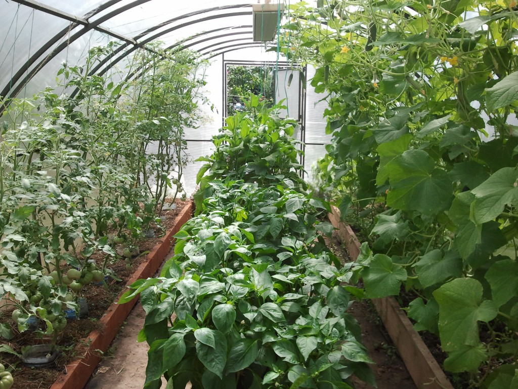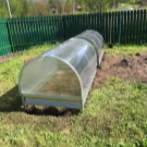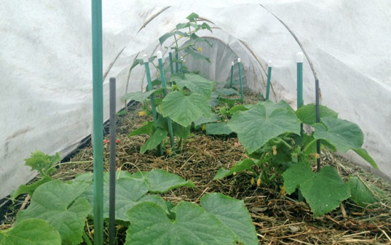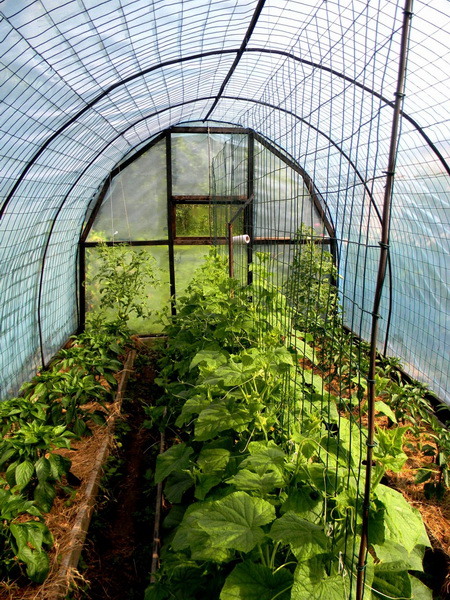 Tout, votre tunnel de serre en pleine préparation. Maintenant, vous devez faire cuire un lit et vous pouvez commencer à faire pousser des concombres. Les arches servent de support aux jarretières. Si nécessaire, la couverture de la serre peut être retirée entièrement ou légèrement basculée vers le haut, ouvrant l'accès à l'air frais et aux insectes tout en la protégeant du soleil brûlant.