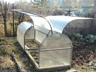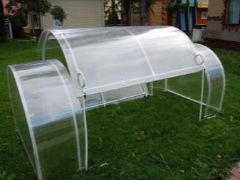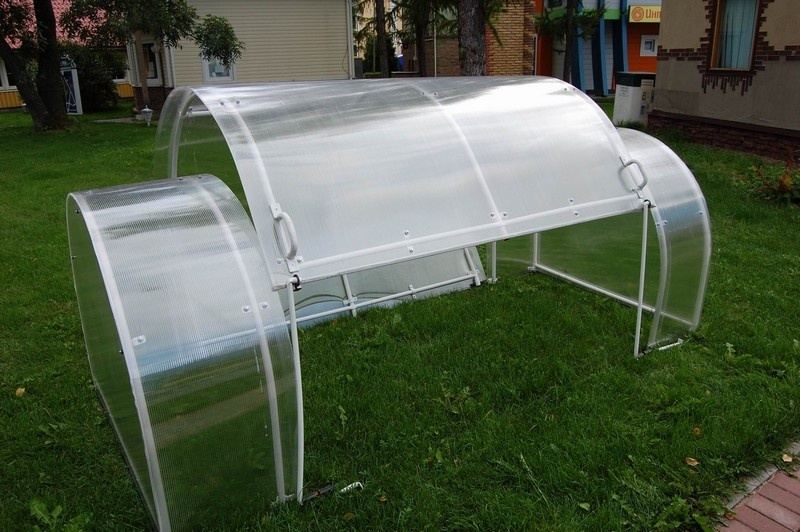 - "Cabriolet" fait référence aux serres préfabriquées, la base est en tube métallique 2x2 cm et les demi-cercles en plastique. Il y a diverses modifications - avec simple et double ouverture. Les dimensions sont normalisées: largeur - 130 cm, hauteur - 120 cm, options de longueur - 160, 330 ou 400 cm.