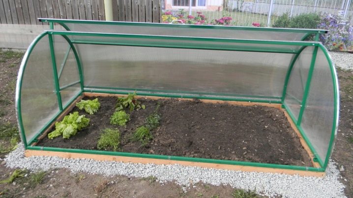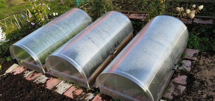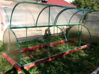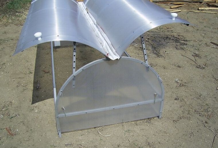 La longueur de la serre dépend du désir des propriétaires. La hauteur optimale des serres est de 150 cm, les portes n'y sont pas montées, elles ne nécessitent pas, contrairement aux serres, l'installation de systèmes de chauffage et d'éclairage.La température requise sous l'abri est fournie par le soleil et la chaleur qui libère le compost en surchauffe. Il existe des constructions fixes et portables (fabriquées selon la technologie allemande) de serres, de modèles pliants et coulissants.
