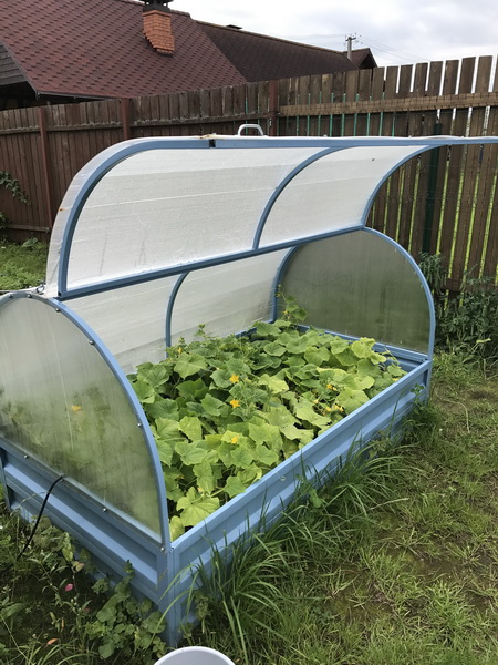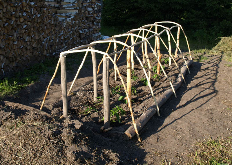 Serre-hutte - peut-être la plus simple des "bourraches", facile à installer sur n'importe quelle parcelle de terrain. Il est préférable de l’installer dans un endroit à l’abri des rafales de vent, il serait bon qu’il y ait une ombre d’arbres, une clôture ou une maison au milieu de la journée.